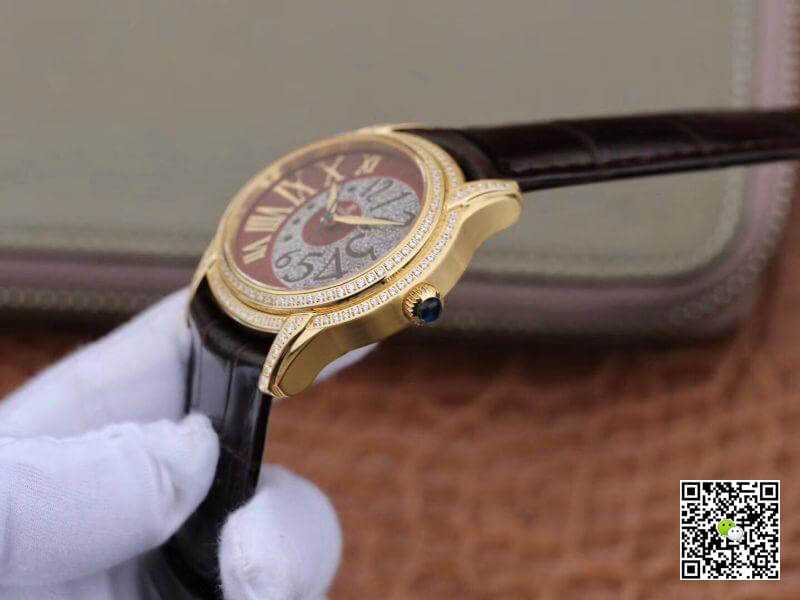 The anti-counterfeiting marks on the dial, case and back cover of the Replica Audemars Piguet Millenary Ladies 77302BA.ZZ.D094CR.01 Brown Dial watch are almost the same as the original ones, and the anti-counterfeiting marks of each watch are extremely comparable to the original ones. "SWISS MADE" is printed at 6 o'clock on the dial. For example, some of the Roman numerals of Cartier contain "CARTIER" letters. You can see these marks if you look closely.