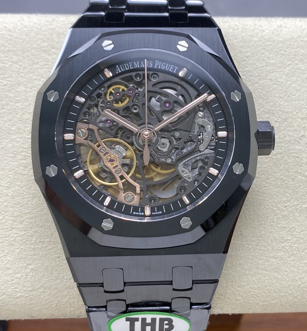 The Replica Audemars Piguet Royal Oak 15416CE.OO.1225CE.01 THB Factory V2 Edition Black Ceramic Case watch movement is a factory clone movement, and its appearance is difficult to distinguish from the original. Among them, the quartz movement adopts the same original Swiss Ronda quartz movement, so the quartz watches we sell have the same functions as the original. - Special mark