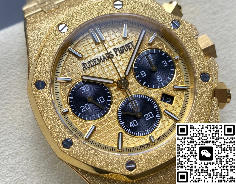 The anti-counterfeiting marks on the dial, case and back cover of the Replica Audemars Piguet Royal Oak 26240BA.GG.1324BA.01 OM factory Hammered Gold watch are almost the same as the original ones, and the anti-counterfeiting marks of each watch are extremely comparable to the original ones. "SWISS MADE" is printed at 6 o'clock on the dial. For example, some of the Roman numerals of Cartier contain "CARTIER" letters. You can see these marks if you look closely. - customer service