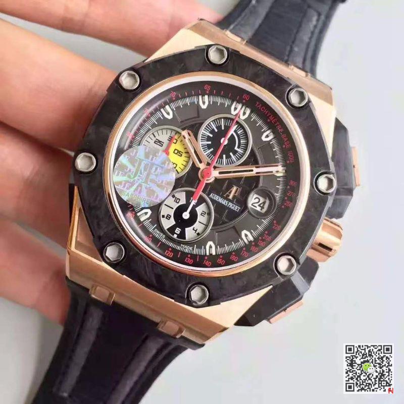 The Replica Audemars Piguet Royal Oak Offshore 26290RO.OO.A001VE.01 JF Factory V2 Balck Dial watch uses top-quality materials comparable to the original. The watch cover is the same original high-transparency sapphire crystal glass, and some styles of blue-coated sapphire are all blue-coated, so it is difficult to distinguish the true from the false. The stainless steel case and strap are made of the same original 904L and 316L, E.g Noob Rolex V10. The carbon fiber case is also comparable to the original high-hardness carbon fiber material. The ceramic bezel material and surface color fonts are the same. The factory uses high-quality materials, and this Replica Audemars Piguet Royal Oak Offshore 26290RO.OO.A001VE.01 JF Factory V2 Balck Dial watch can hardly be distinguished from the real from the appearance. - About the movement