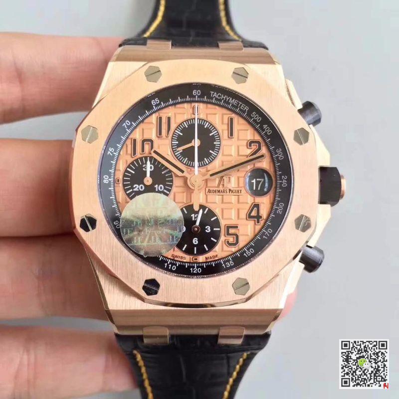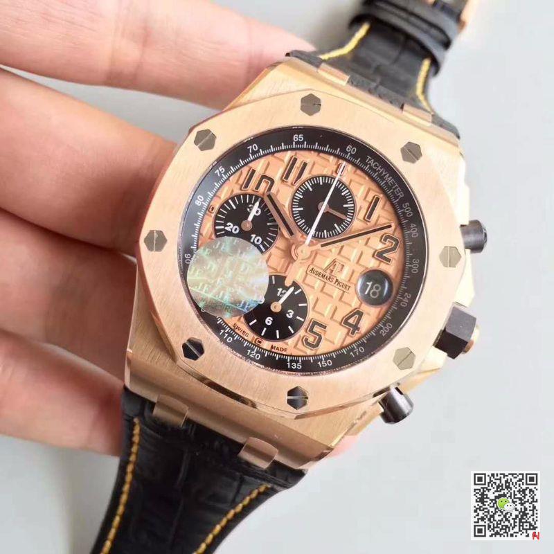 The Replica Audemars Piguet Royal Oak Offshore 26470OR.OO.A002CR.01 JF Factory V2 Gold Dial watch uses top-quality materials comparable to the original. The watch cover is the same original high-transparency sapphire crystal glass, and some styles of blue-coated sapphire are all blue-coated, so it is difficult to distinguish the true from the false. The stainless steel case and strap are made of the same original 904L and 316L, E.g Noob Rolex V10. The carbon fiber case is also comparable to the original high-hardness carbon fiber material. The ceramic bezel material and surface color fonts are the same. The factory uses high-quality materials, and this Replica Audemars Piguet Royal Oak Offshore 26470OR.OO.A002CR.01 JF Factory V2 Gold Dial watch can hardly be distinguished from the real from the appearance. - About the movement
