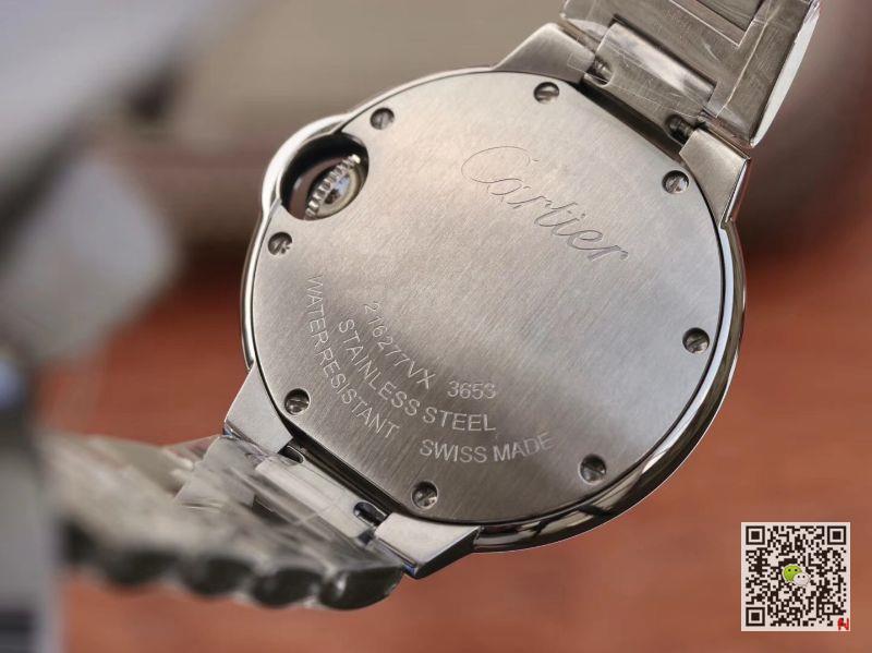 The anti-counterfeiting marks on the dial, case and back cover of the Replica Ballon Bleu De Cartier 33mm V6 Factory White Dial watch are almost the same as the original ones, and the anti-counterfeiting marks of each watch are extremely comparable to the original ones. "SWISS MADE" is printed at 6 o'clock on the dial. For example, some of the Roman numerals of Cartier contain "CARTIER" letters. You can see these marks if you look closely. - customer service