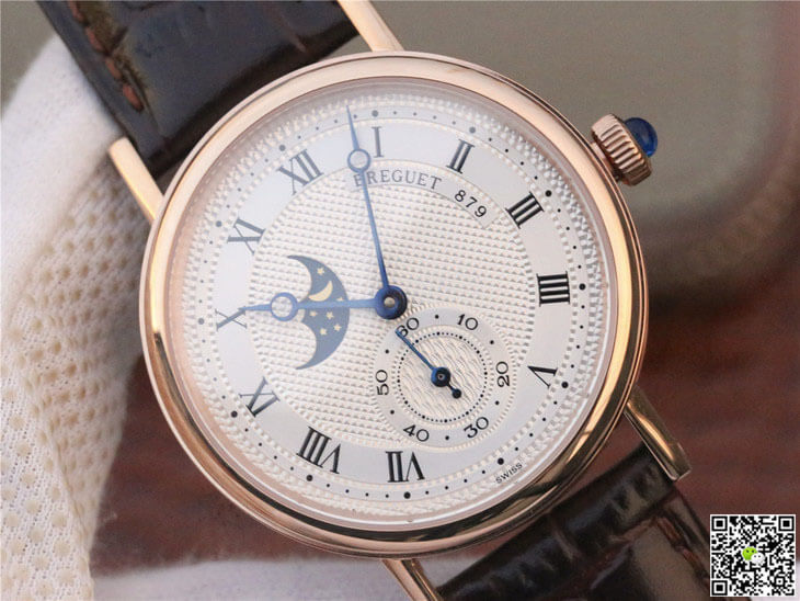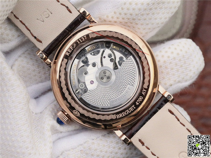 The anti-counterfeiting marks on the dial, case and back cover of the Replica Breguet Classique Moonphase 4396 Rose Gold watch are almost the same as the original ones, and the anti-counterfeiting marks of each watch are extremely comparable to the original ones. "SWISS MADE" is printed at 6 o'clock on the dial. For example, some of the Roman numerals of Cartier contain "CARTIER" letters. You can see these marks if you look closely. - customer service