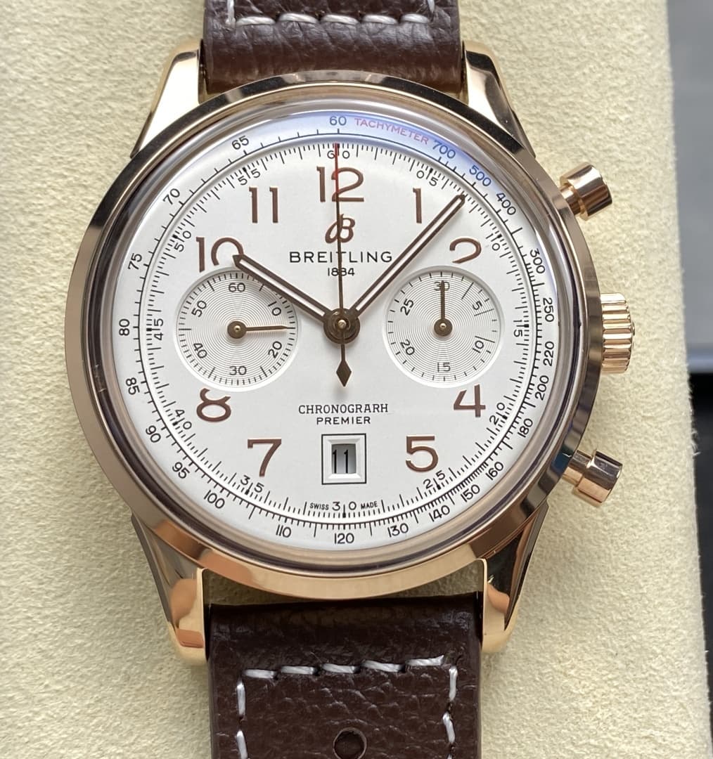 The Replica Breitling Premier RB0145371G1P1 BLS factory Brown Strap watch is a 1:1 replica of the BLS Factory using top materials comparable to the original. If you are not a professional watchmaker, it is difficult to distinguish the true from the false. If you like this high-quality Replica Breitling watches, now you can buy a luxury watch with very little money, and we support global delivery.
