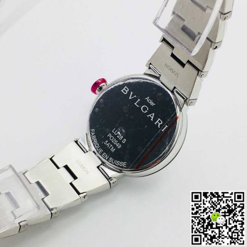 The anti-counterfeiting marks on the dial, case and back cover of the Replica Bvlgari LVCEA BV Factory Stainless Steel Strap watch are almost the same as the original ones, and the anti-counterfeiting marks of each watch are extremely comparable to the original ones. "SWISS MADE" is printed at 6 o'clock on the dial. For example, some of the Roman numerals of Cartier contain "CARTIER" letters. You can see these marks if you look closely. - customer service