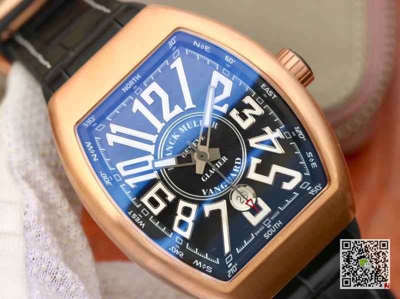 The anti-counterfeiting marks on the dial, case and back cover of the Replica Franck Muller Vanguard V45-02 Rose Gold Black Dial watch are almost the same as the original ones, and the anti-counterfeiting marks of each watch are extremely comparable to the original ones. "SWISS MADE" is printed at 6 o'clock on the dial. For example, some of the Roman numerals of Cartier contain "CARTIER" letters. You can see these marks if you look closely. - customer service