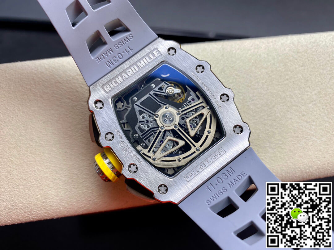The Replica Richard Mille RM11-03 KV Factory Titanium Steel watch is a high-quality luxury fake watch made by KV Factory using the same top materials as the original. Its appearance and function are very close to the original Richard Mille watch.