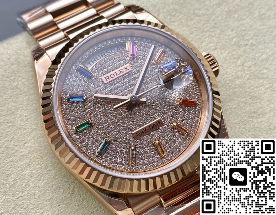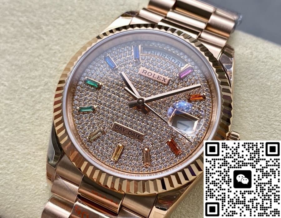 The Replica Rolex Day-Date 128235-0039 8+ factory Rose Gold watch movement is a factory clone movement, and its appearance is difficult to distinguish from the original. Among them, the quartz movement adopts the same original Swiss Ronda quartz movement, so the quartz watches we sell have the same functions as the original. - Special mark