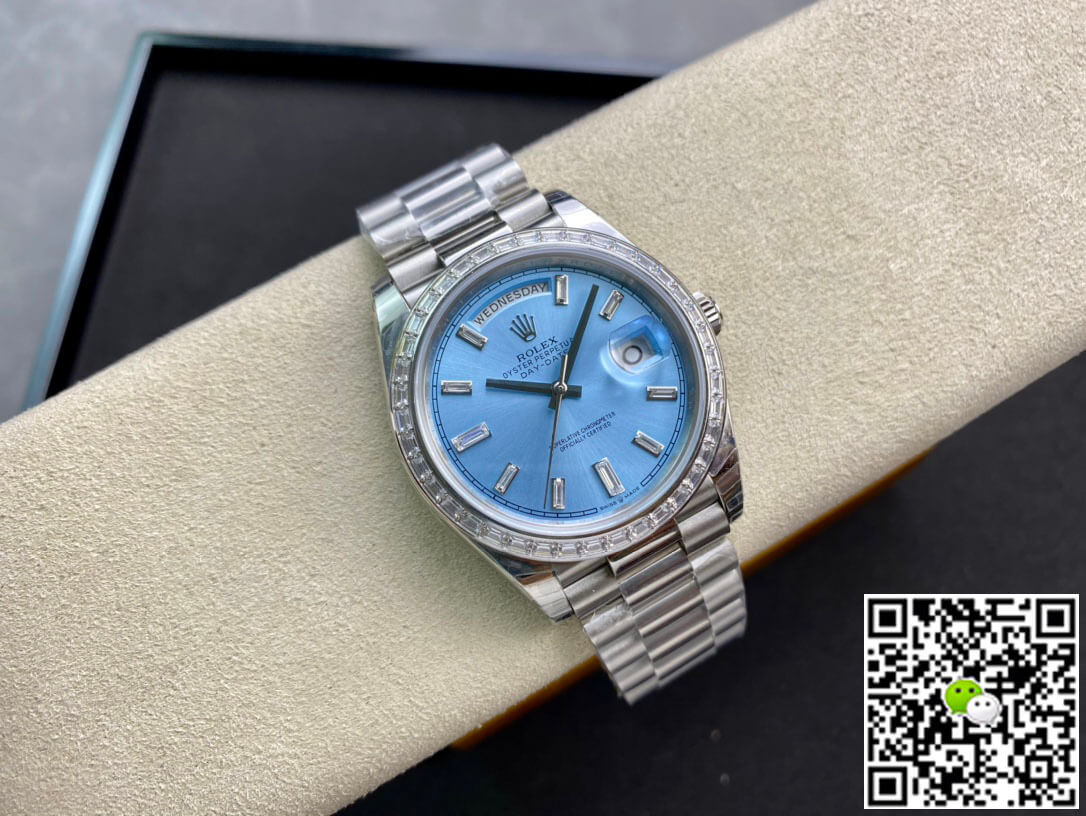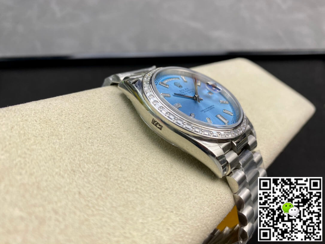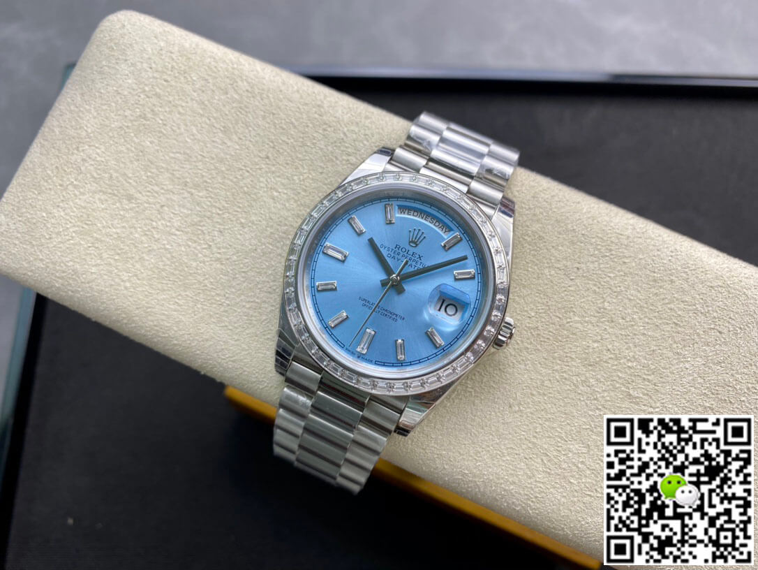The Replica Rolex Day Date 228396TBR EW Factory Light Blue Dial watch is a 1:1 replica of the EW Factory using top materials comparable to the original. If you are not a professional watchmaker, it is difficult to distinguish the true from the false. If you like this high-quality Replica Rolex watches, now you can buy a luxury watch with very little money, and we support global delivery.