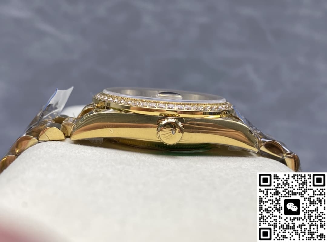 Rolex Day-Date m128348rbr-0081 8+ factory Gold Bezel replica watch,The replica watches sold in this mall are produced in strict accordance with the original products in terms of size, color, material, and craftsmanship. Put them on the same horizontal line, and you can see that the overall shell, scale, and logo are all in the same position, with high reproducibility and exquisite workmanship.It has many advantages such as stable performance. We have cooperated with major manufacturers for many years and have rich experience in watch inspection.Relying on the contacts,experience and resources accumulated in the watch replica industry for many years, we serve our customers.