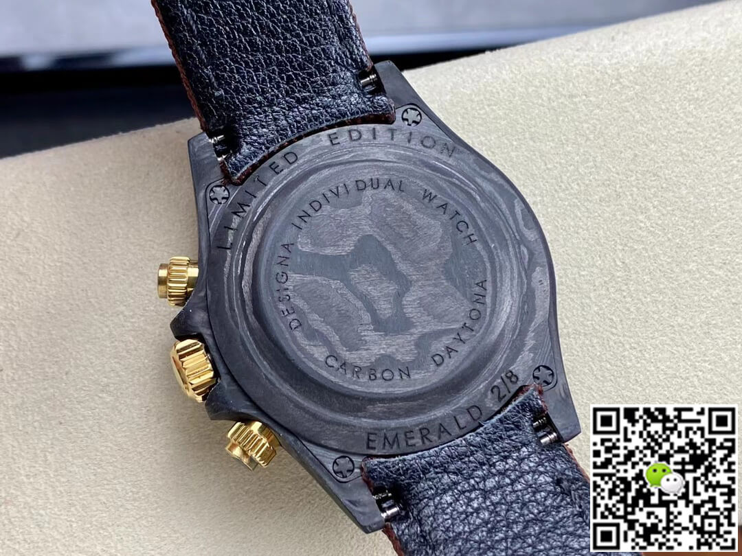 The anti-counterfeiting marks on the dial, case and back cover of the Replica Rolex Daytona Cosmograph Diw Custom Version Noob Factory Brown Fabric Strap watch are almost the same as the original ones, and the anti-counterfeiting marks of each watch are extremely comparable to the original ones. "SWISS MADE" is printed at 6 o'clock on the dial. For example, some of the Roman numerals of Cartier contain "CARTIER" letters. You can see these marks if you look closely.
