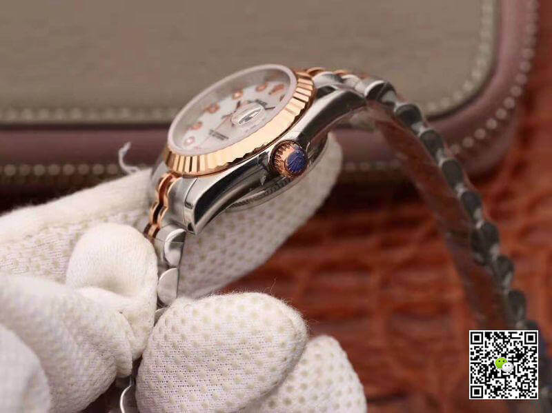 The Replica Rolex Lady Datejust Rose Gold 28MM White Enamel Dial watch movement is a factory clone movement, and its appearance is difficult to distinguish from the original. Among them, the quartz movement adopts the same original Swiss Ronda quartz movement, so the quartz watches we sell have the same functions as the original. - Special mark